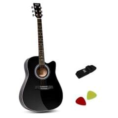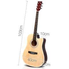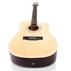 Sitting out on the porch playing guitar and singing with your mates or even going away sitting around the campfire and singing in harmony is definitely enjoyable and fun; and you will need this affordable Acoustic Cutaway Steel-Stringed Guitar to complete your performance.Crafted from the finest materials, the guitar is made of laminated linden for its top, back, and side. With the Hard Wood neck and Maple Wood Fingerboard, the cutaway delivers beautiful sound and chic look at one time. The delicate process of manufacture including bracing and finishing techniques, thickness and wood tuning guarantee this guitar a real pleasure to play.