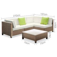 5 pcs Brown Wicker Rattan 4 Seater Outdoor Lounge Set Beige
