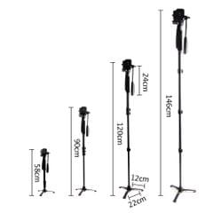Featuring a sturdy alloy monopod with fully foldable support legs, this 146cm Weifeng Monopod is designed to assist you of taking many wonderful photos. Lightweight and reliable design equipped with comfortable sponge padding, this monopod will be able to support your camera properly and safely. With quick release play and secured clip, 90? adjustable side turning and 4 sections flip leg locking system, you will be impressed with the beautiful photos taken with this monopod.