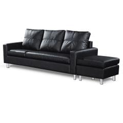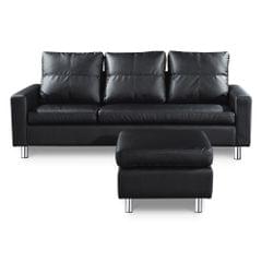 Four Seater Faux Leather Sofa with Ottoman Black