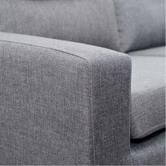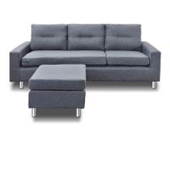 Four Seater Faux Linen Fabric Sofa with Ottoman Grey