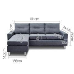 Beautify your home with this fashionable 4 seater modular sofa. It features delicate faux linen fabric with thick cushioning providing superior seating comfort. Display it as a 4 seater sofa to provide more seating space, or easily convert it to a two seater sofa with a chaise longue for relaxing seating. Highly practical and served with a modern flair. Live the contemporary life.