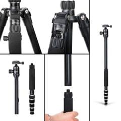To have the convenience and portability in your photos taking journey, this tripod also contains a built-in monopod. The transformation is simple and only takes seconds to do.