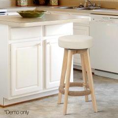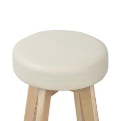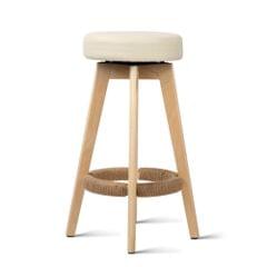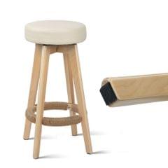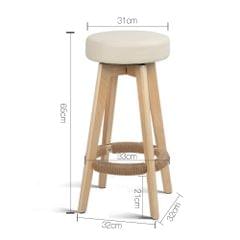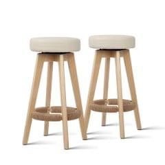 Set of 2 PU Leather Bar Stools with Wood Base Beige